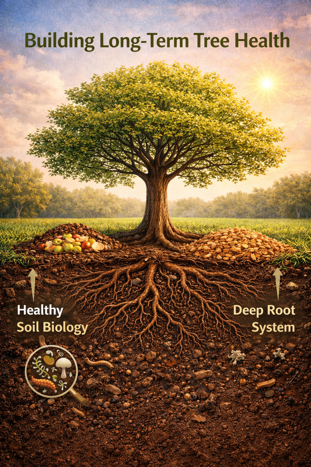 Urban environments are becoming increasingly challenging for trees due to construction, soil compaction, and environmental stress, which makes it more important than ever to support their internal systems rather than relying on external treatments. Chemical solutions do not build resilience—they manage symptoms. Healthy soil, on the other hand, strengthens the tree from within, allowing it to adapt and survive in difficult conditions.