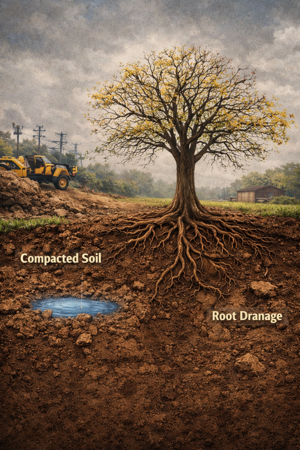 One of the most common misconceptions I see as an ISA Certified Arborist is that insects and diseases are the primary problem, when in reality they are usually secondary symptoms of stress. Trees typically become vulnerable due to environmental and soil-related issues such as compaction from construction, poor drainage, root damage, nutrient imbalances, or long-term exposure to urban stress conditions. By the time pests show up, the tree is already compromised internally. Chemical treatments may remove the visible issue, but they do nothing to restore the tree’s natural defense systems. That’s why the same problems tend to reappear year after year. When you understand that tree decline starts below ground, it completely changes how you approach treatment, shifting the focus from reaction to prevention.
